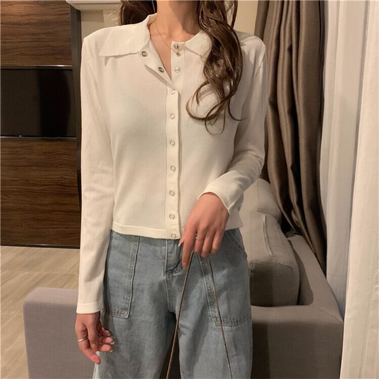 2021年新作 韓国版 スリム 短いスタイル ニット カーディガン 百掛け 長袖 トップス