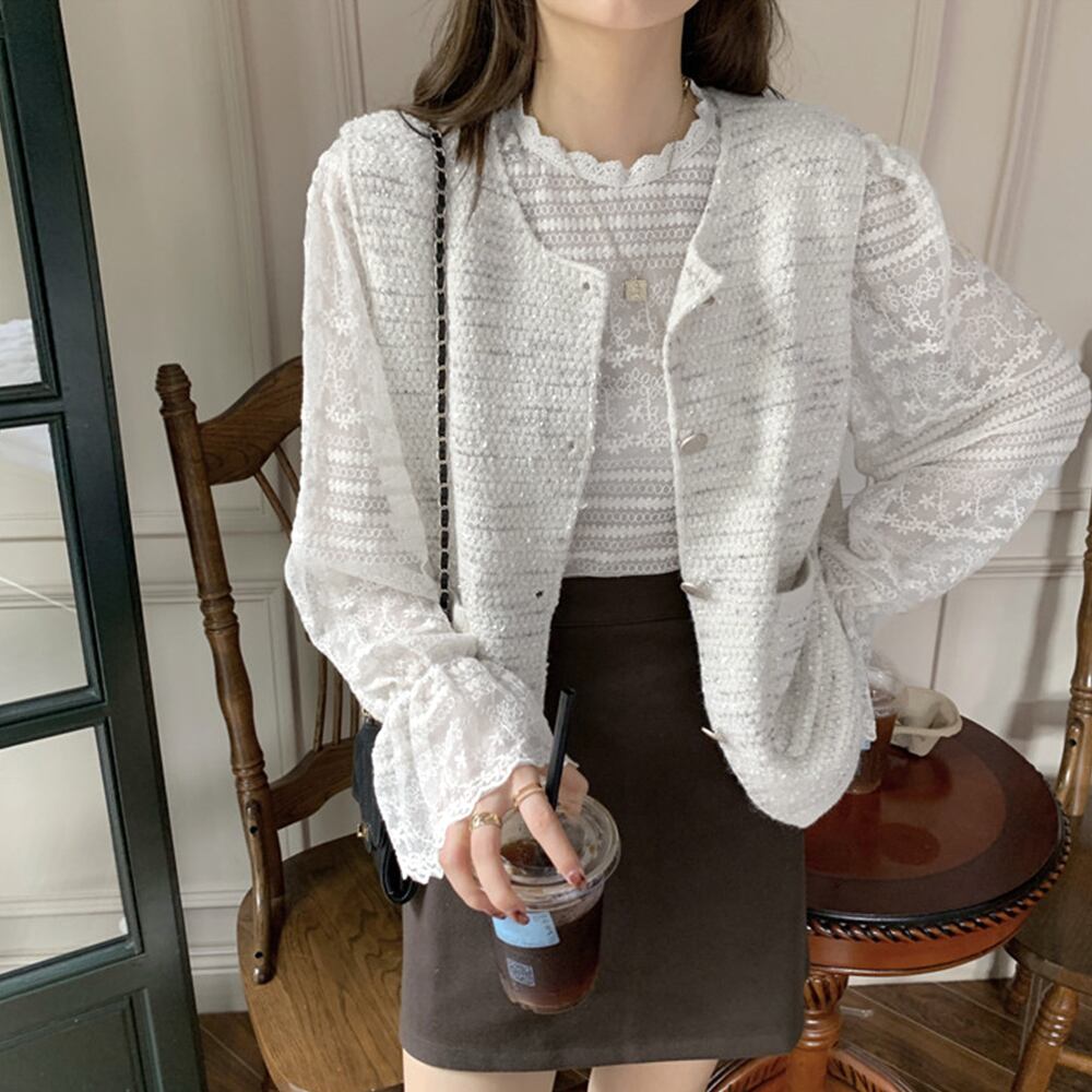 女性らしい表情を作り出してくれるパフスリーブレースブラウス