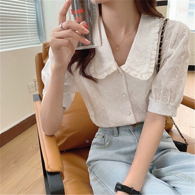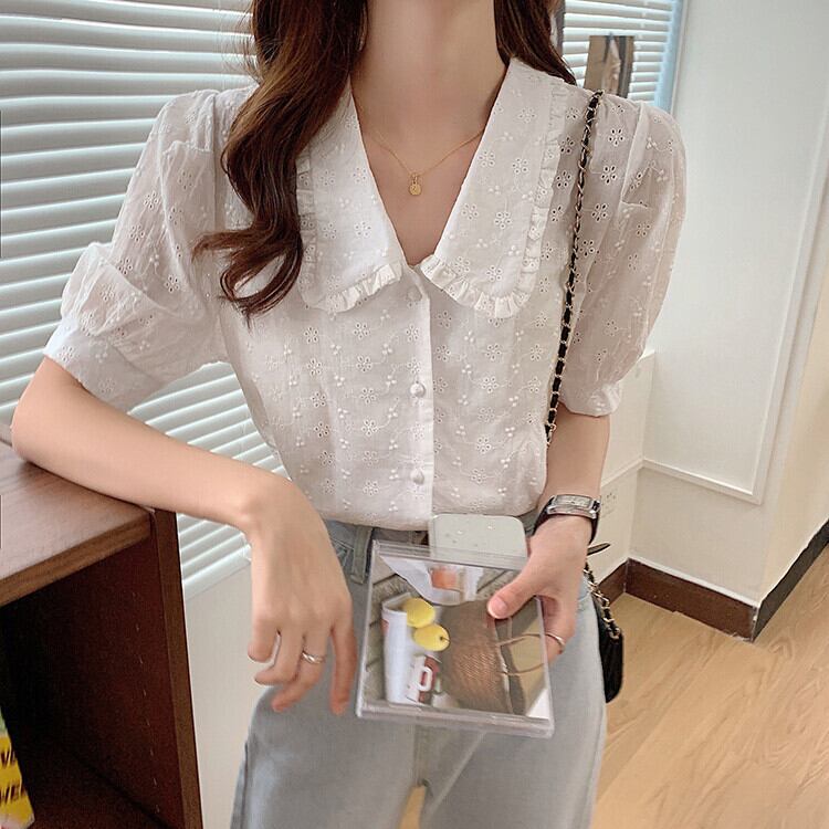 花柄 エレガント カジュアル パフスリーブ レースシャツ はながら