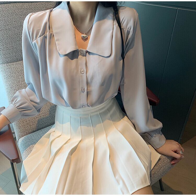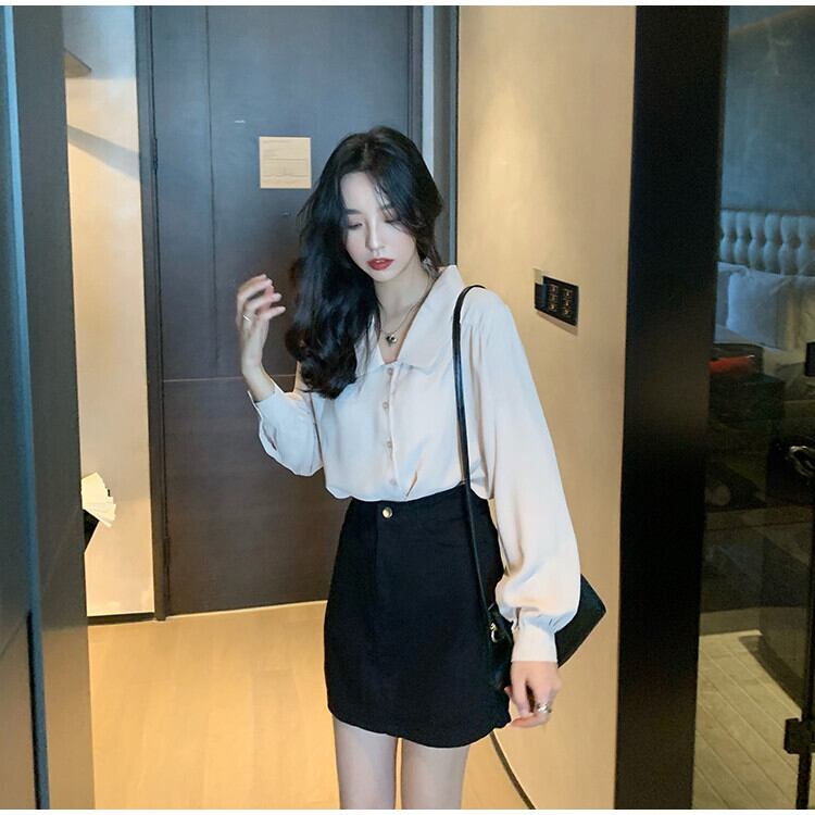 ポロカラー ブラウス 快適である ラペル ゆったりする 気質 カジュアル エレガント