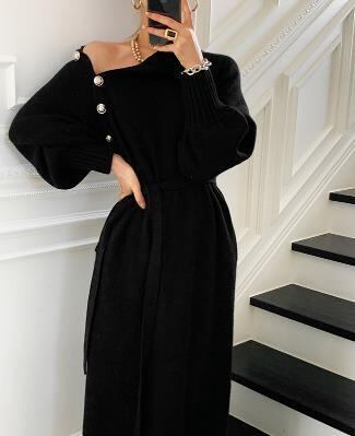 ニットワンピース レディース 長袖ニットロングセーター おしゃれ 無地