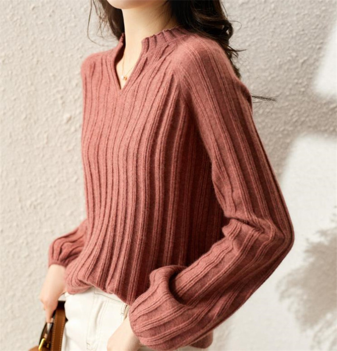 ふわふわ ソフト ハーフハイト Vネック ランタンスリーブ 暖かい ゆったりする 百掛け ニットセーター