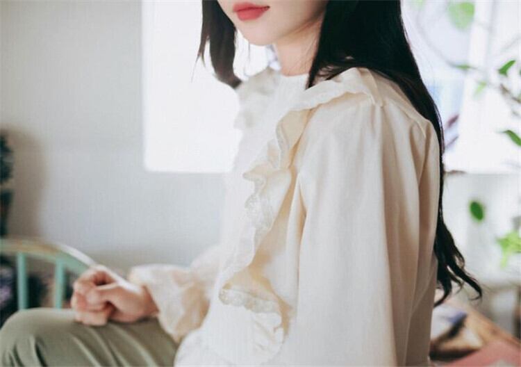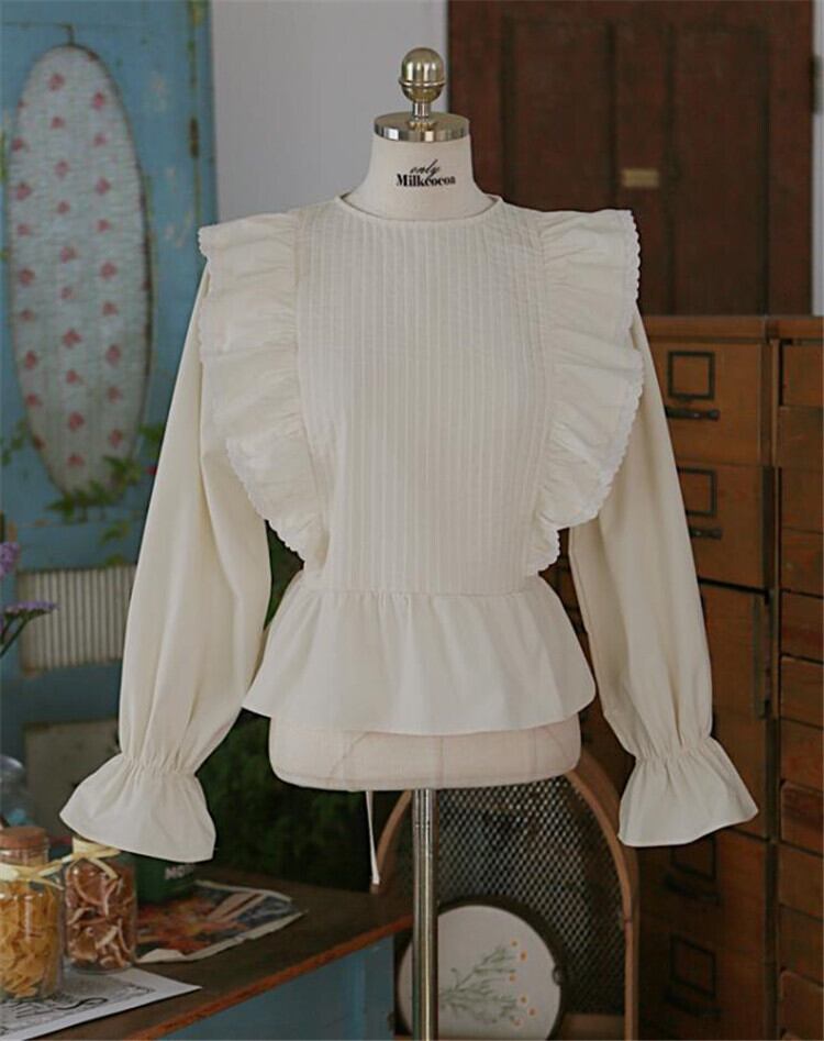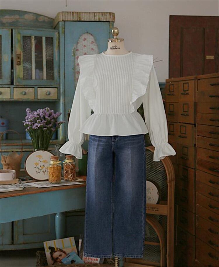 ギャザリング エレガント フリル 韓国版 長袖