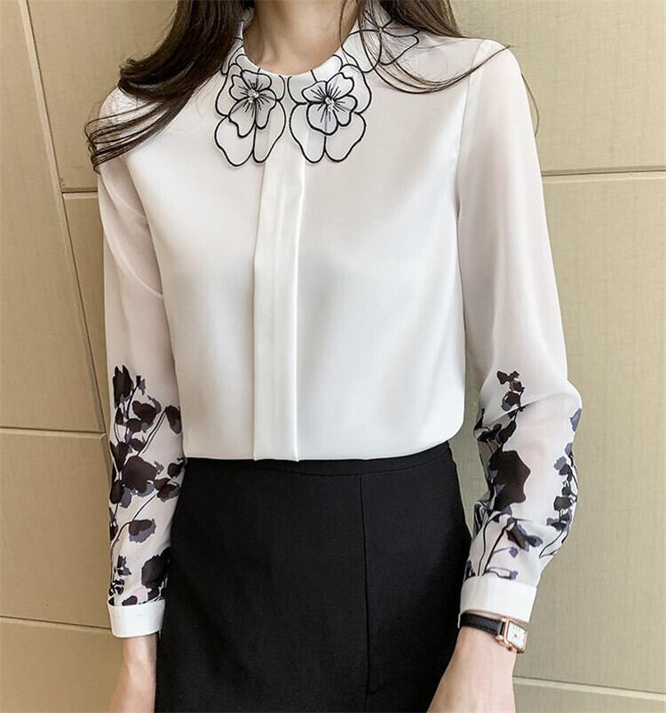 春 新品 デザインセンス シフォン 長袖 シャツ プリント sweet系 OL風