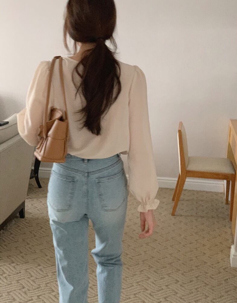 トップス シャツ ブラウス 長袖 シック クルーネック 春 レディース