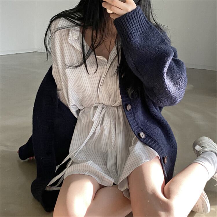 シャツ ストライプ 大人気 ゆったりする sweet系 カレッジ風 長袖