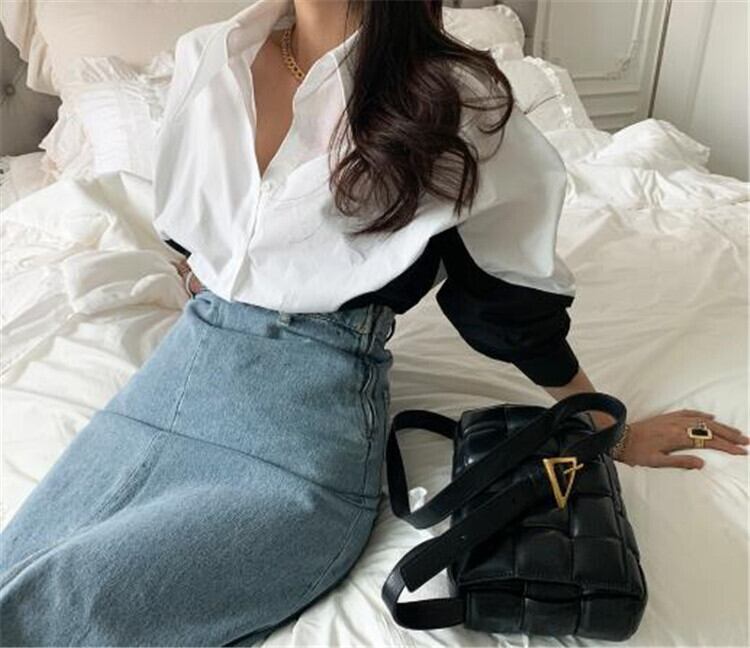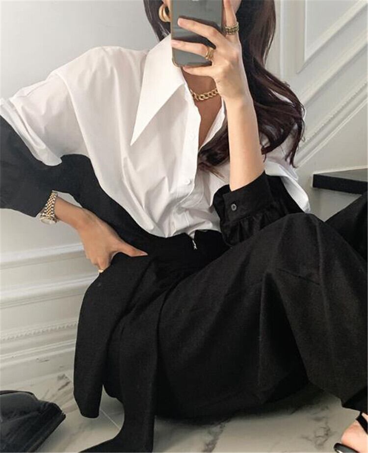 ラペル 単体ボタン ゆったりする 百掛け 長袖 カラーマッチング シャツ トップ