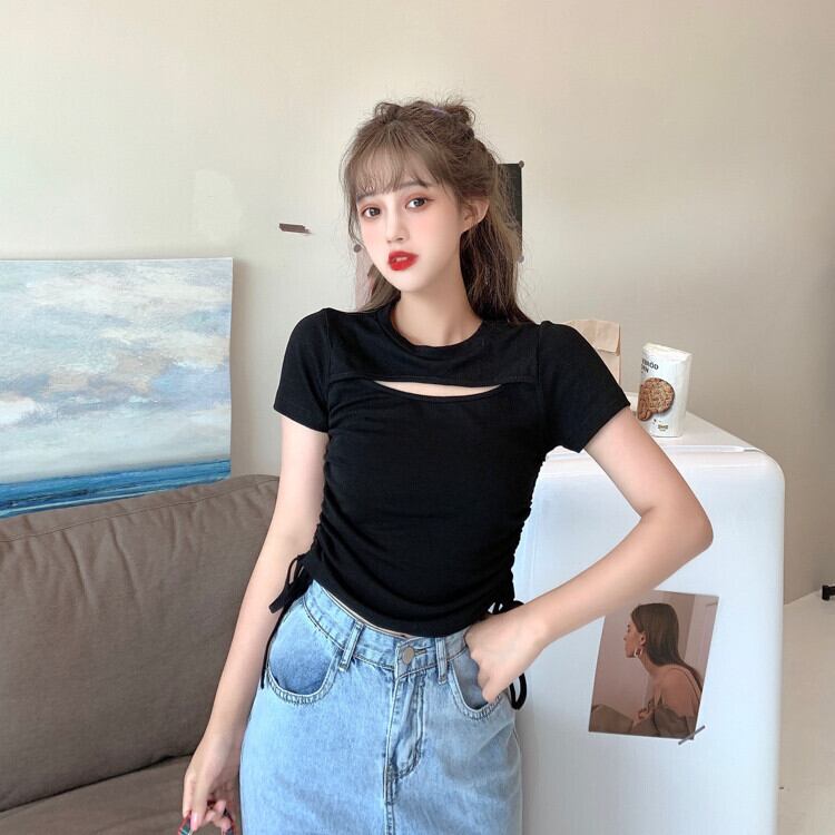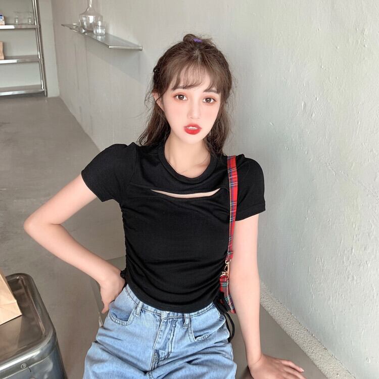 コットン スリムフィット ブラック Tシャツ レディース サマー 百掛け トップス