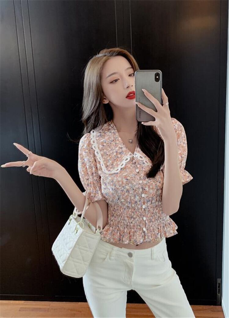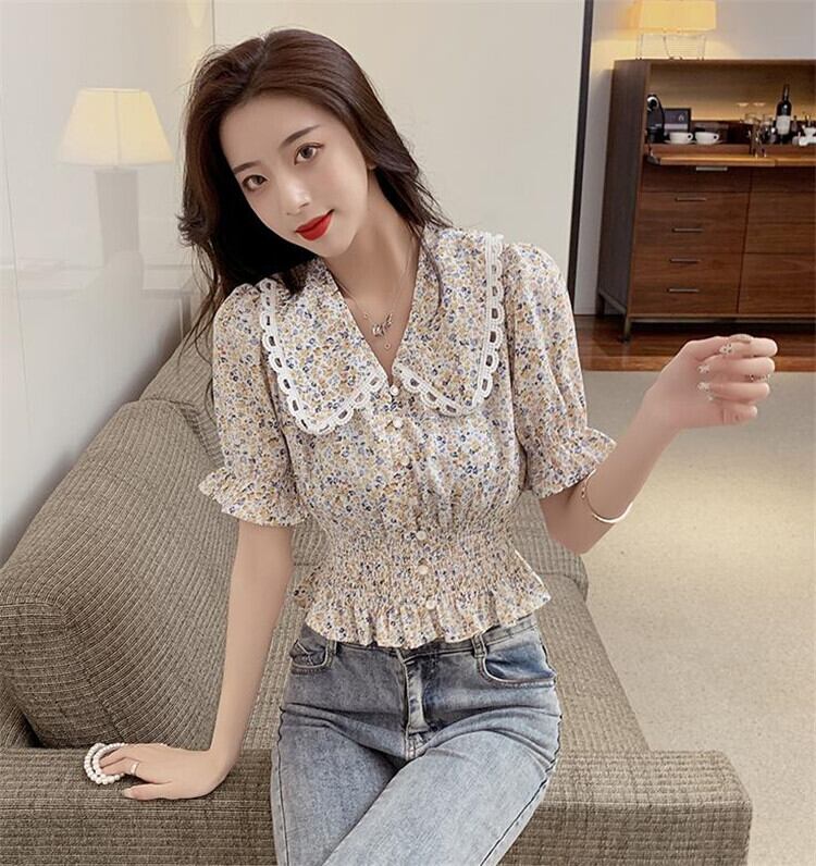 シャツ 快適である スリム 薄手 sweet系 人形の襟 春夏 新作