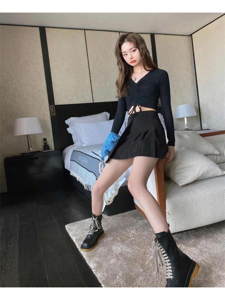 2021 夏 簡約 ハイウエスト スリム ジッパー プリーツスカート 気質