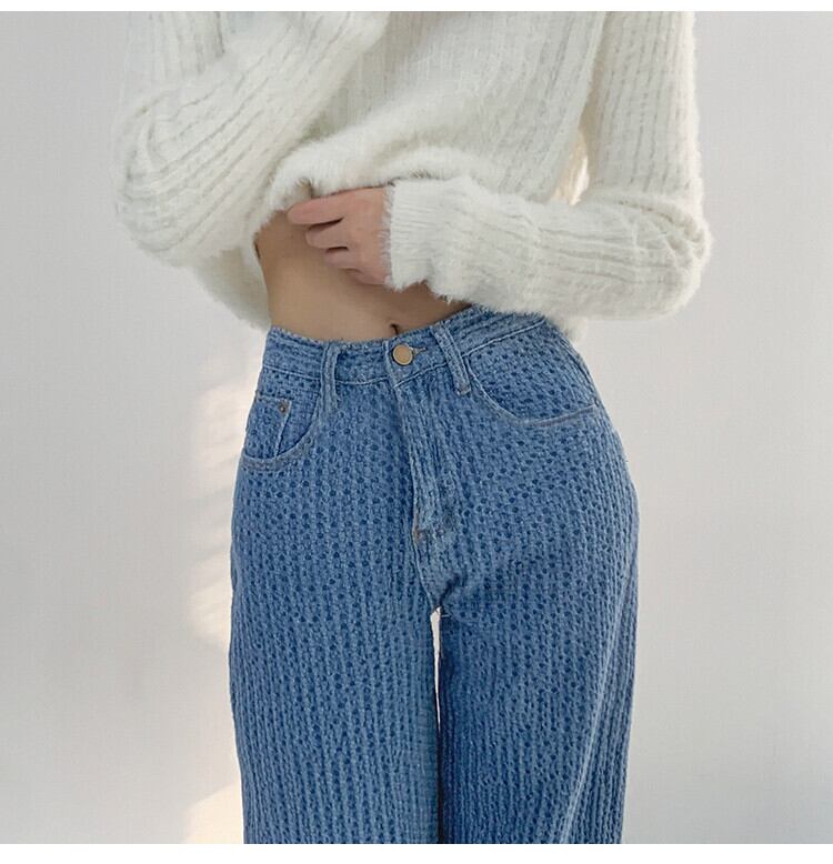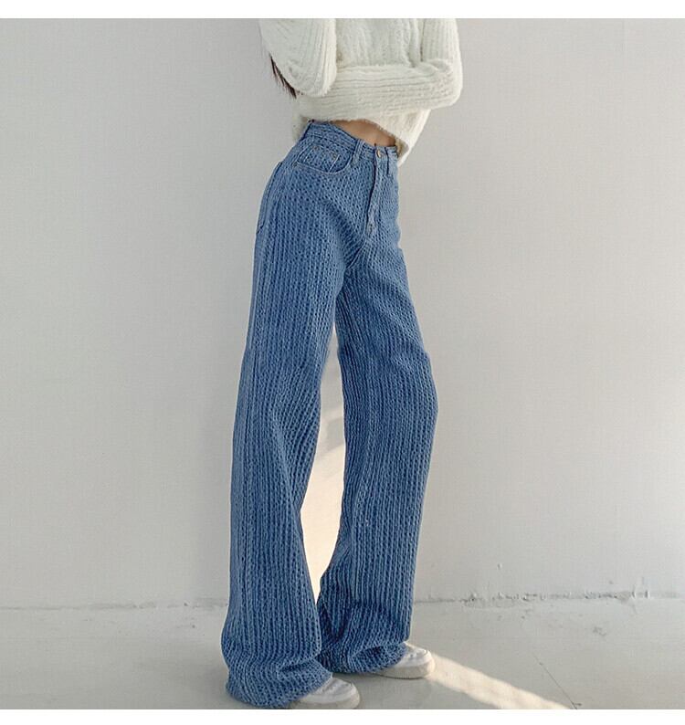 ストレートレッグ ジーンズ 春 エアリー ウーブン 秋 カジュアル ハイウエスト