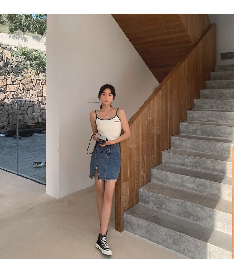 sweet系 気質 ハイウエスト デニムスカート スリム ジッパー スプリット ミニスカート