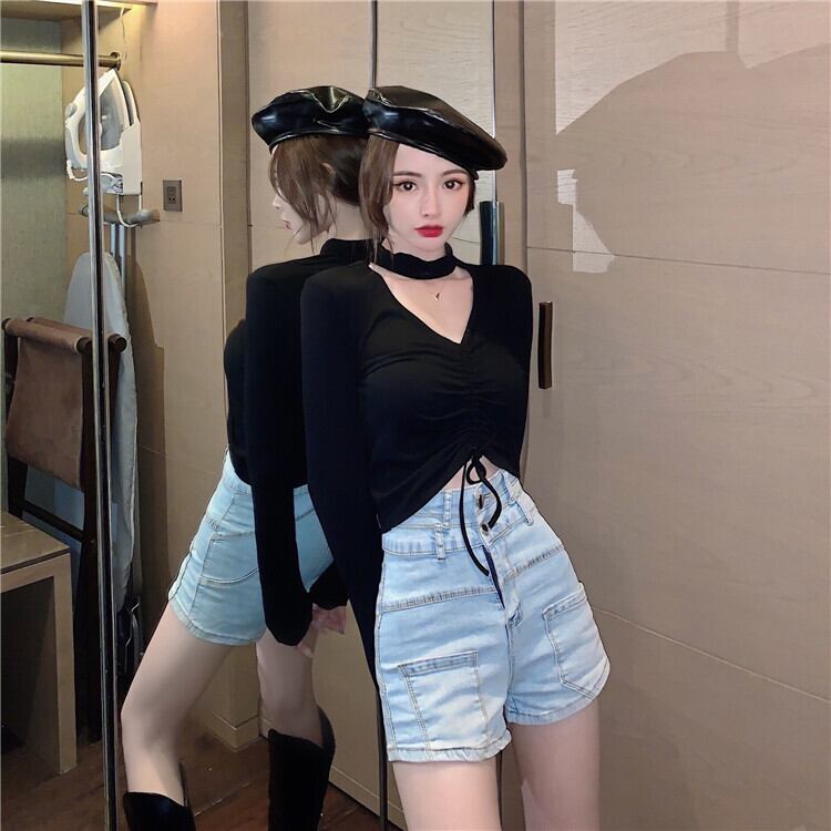 INSスタイル セクシー Vネック 長袖 トップス メス 大人気 春夏新スタイル スリムフィット