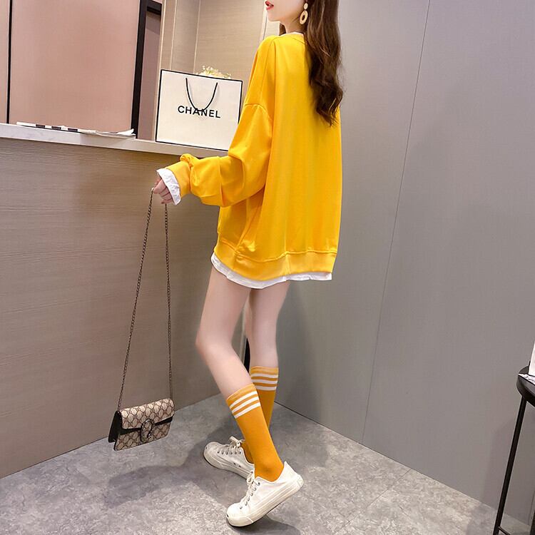 ゆったりする 大きいサイズ 婦人服 無地 フェイク2ピース 薄い パーカー