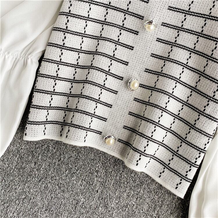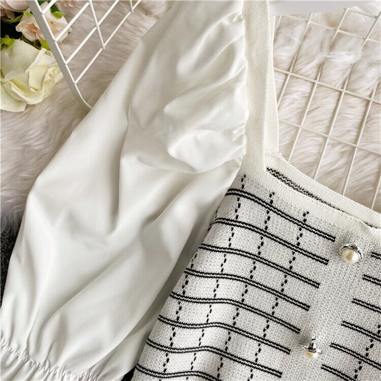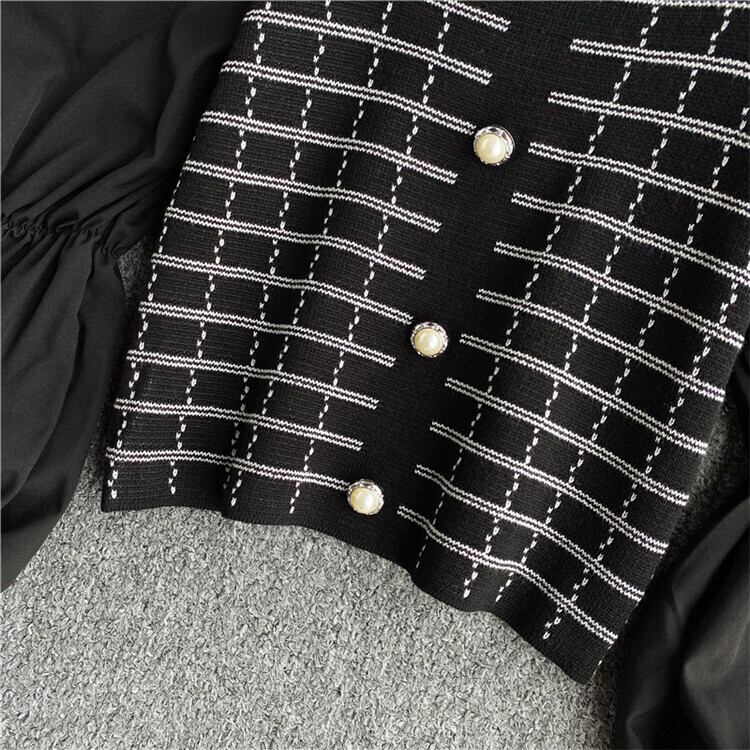 デザインセンス sweet系 気質 スクエアネック ニット 縫付 ランタンスリーブ トップス レトロ