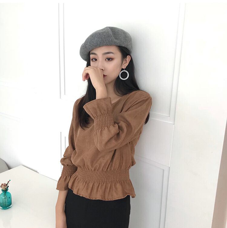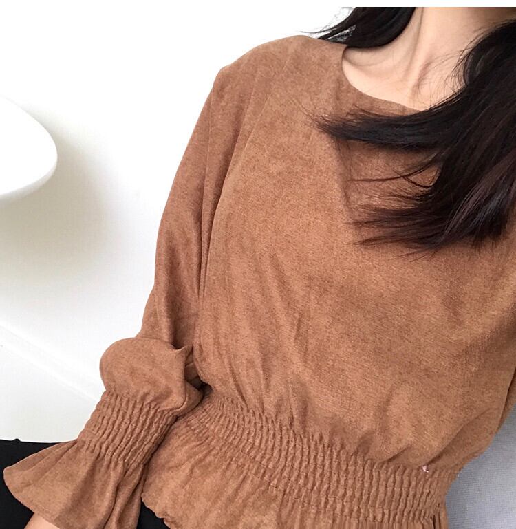 ラウンドネック エレガント ストレッチ 韓国語 長袖 オシャレ