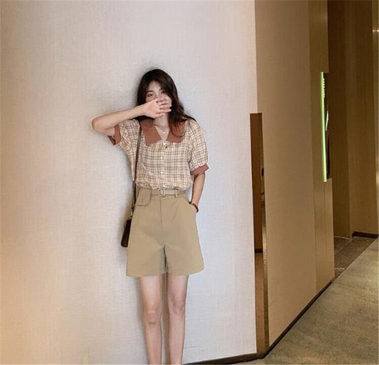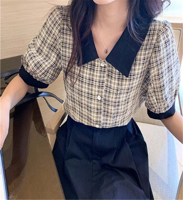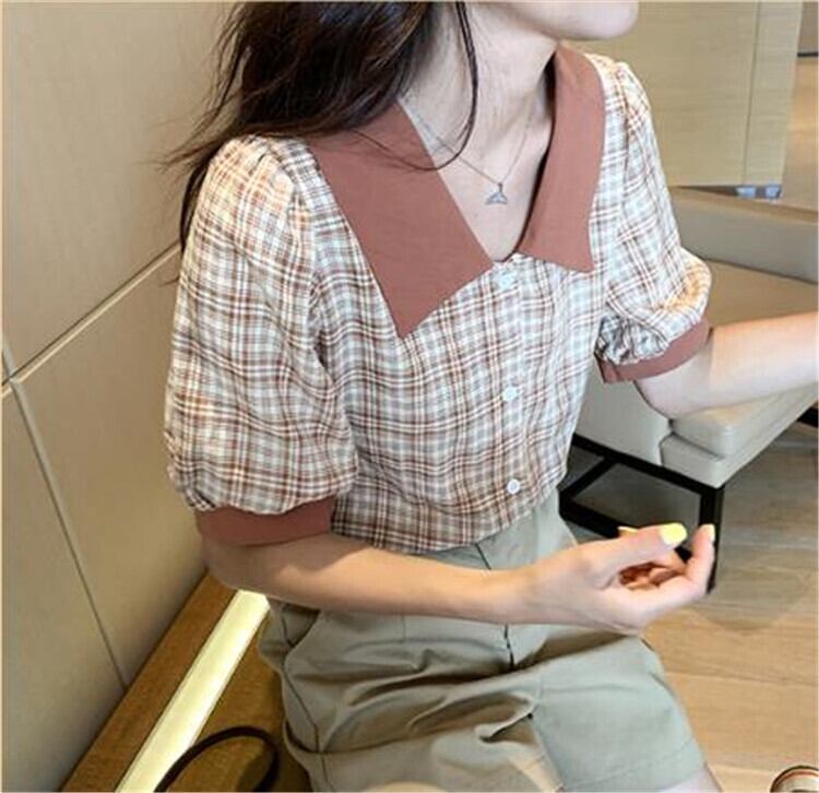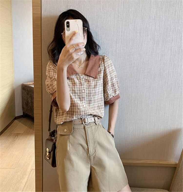 パフスリーブ カジュアル チェック柄 シャツ レディース サマー ニュースタイル