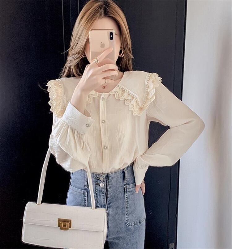 韓国ファッション 気質 シフォン ラウンドネック エレガント