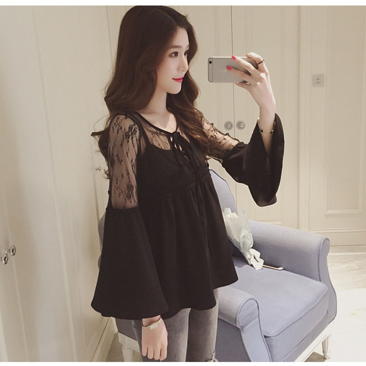 胸元から切り替えデザインのシースルートップスとキャミソールの2点セット