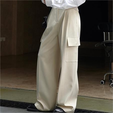 レデイース ボトムス カーゴパンツ シンプル ボーダー ロング丈 カジュアル 2色